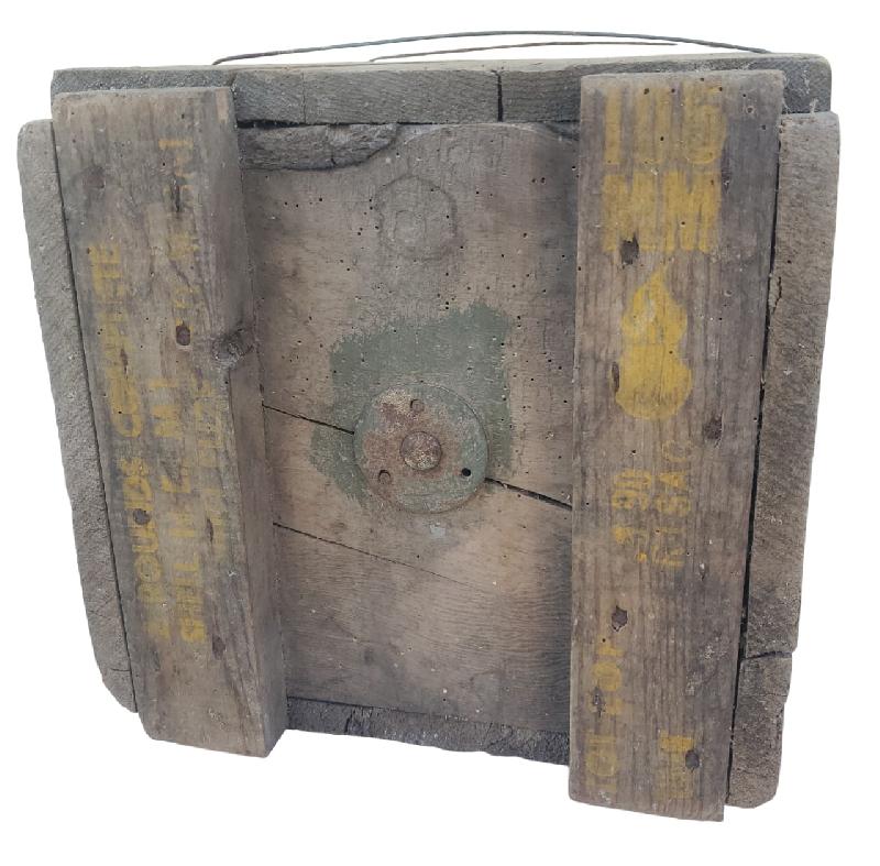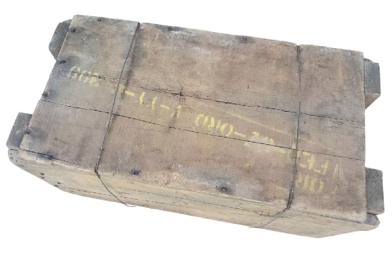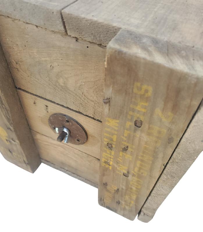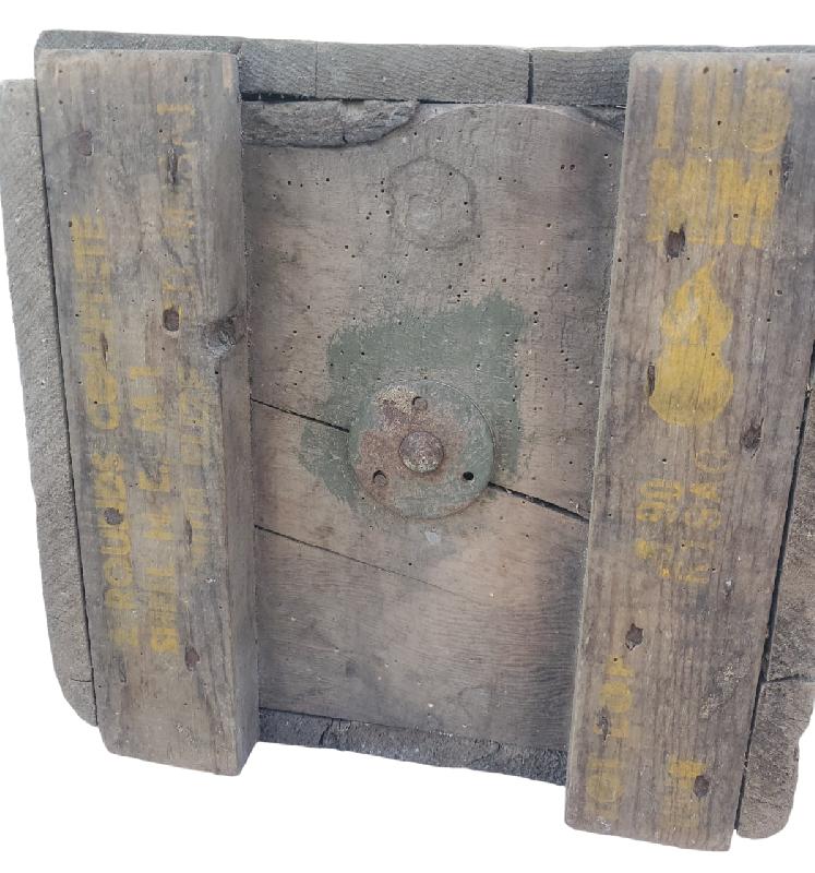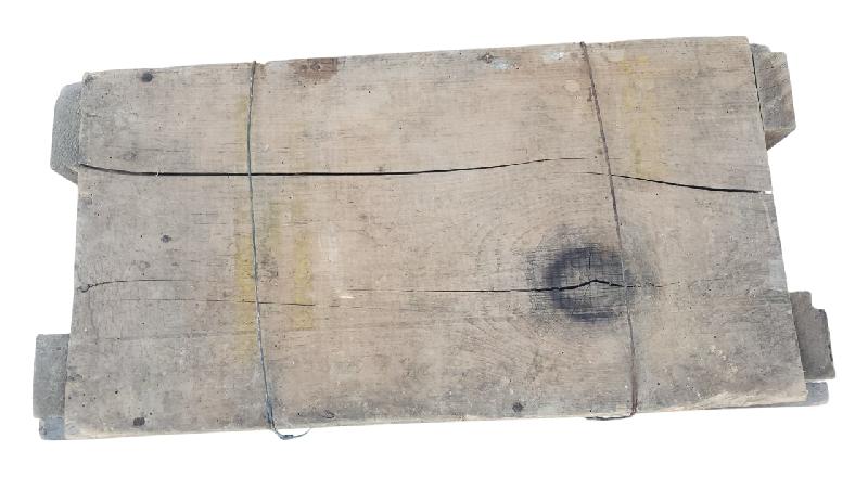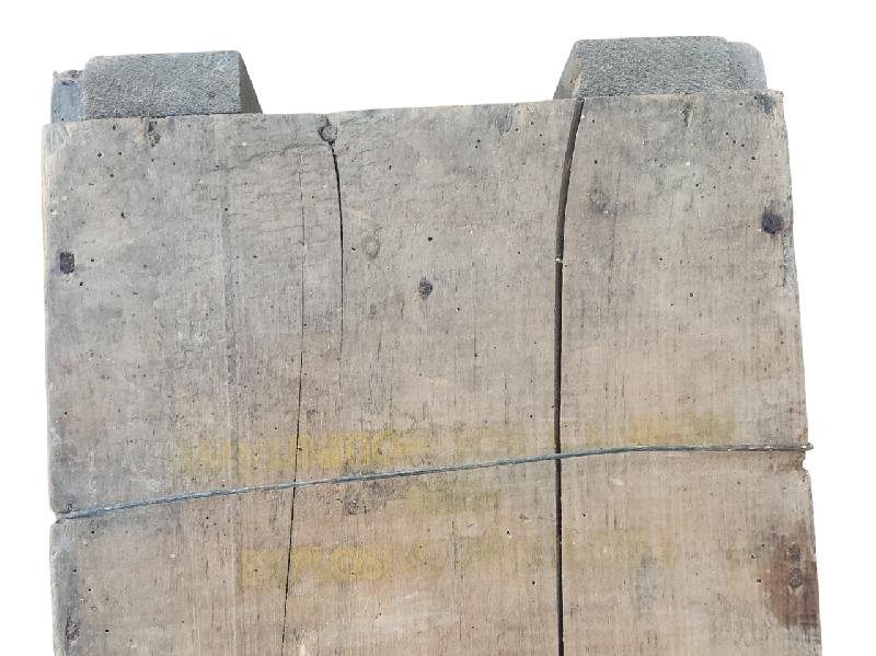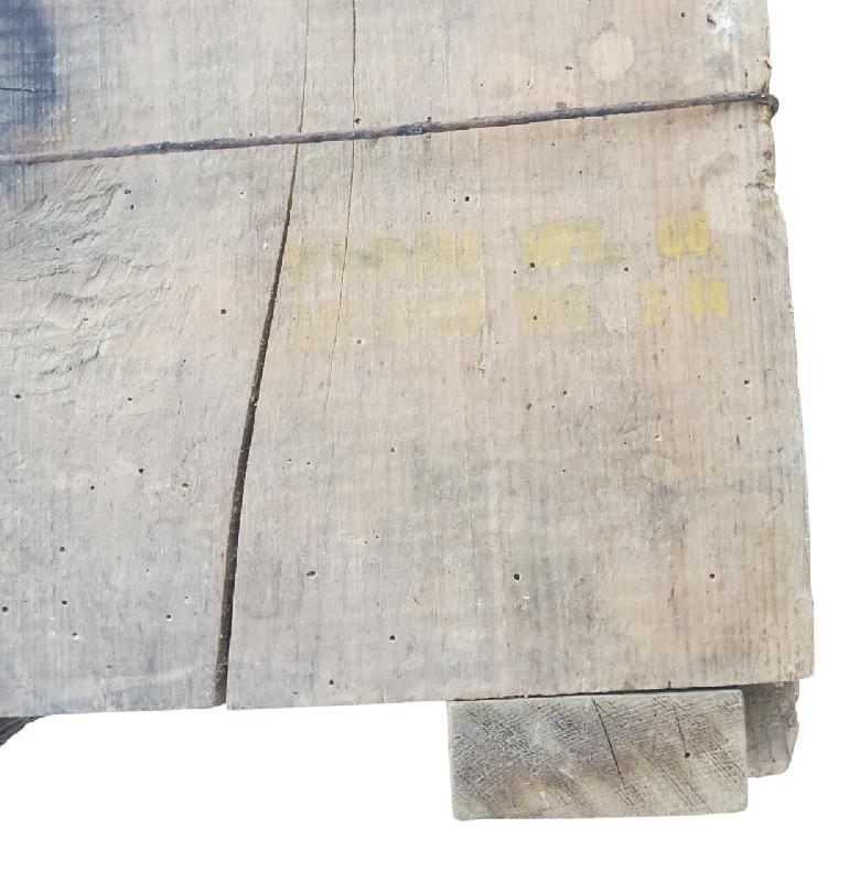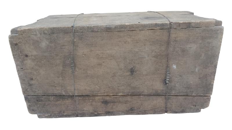 Bois sain sans attaque de bêtes. Présence des fils de fer de renfort de caisse.