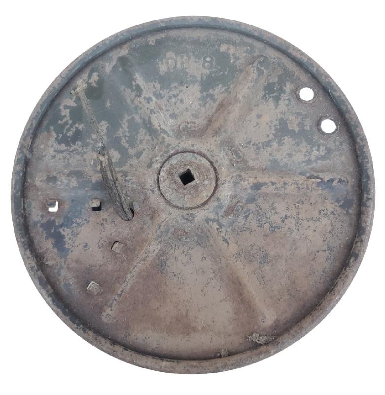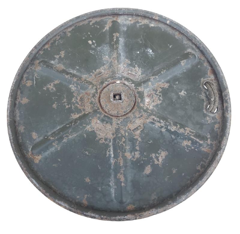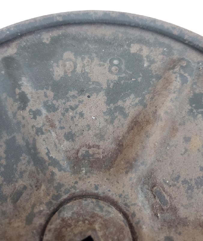 Présente encore une bonne partie de sa peinture. Légèrement voilée.
