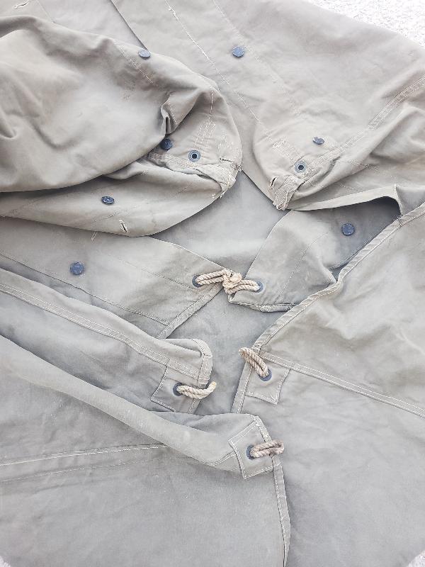 Tous les boutons sont présents. Quelques taches sur la toile. A nettoyer. Cordelettes de sardines présentes.