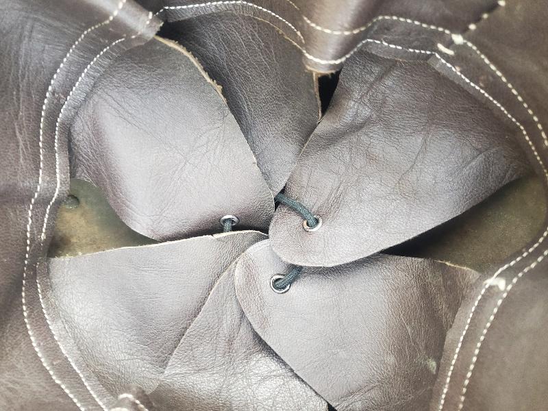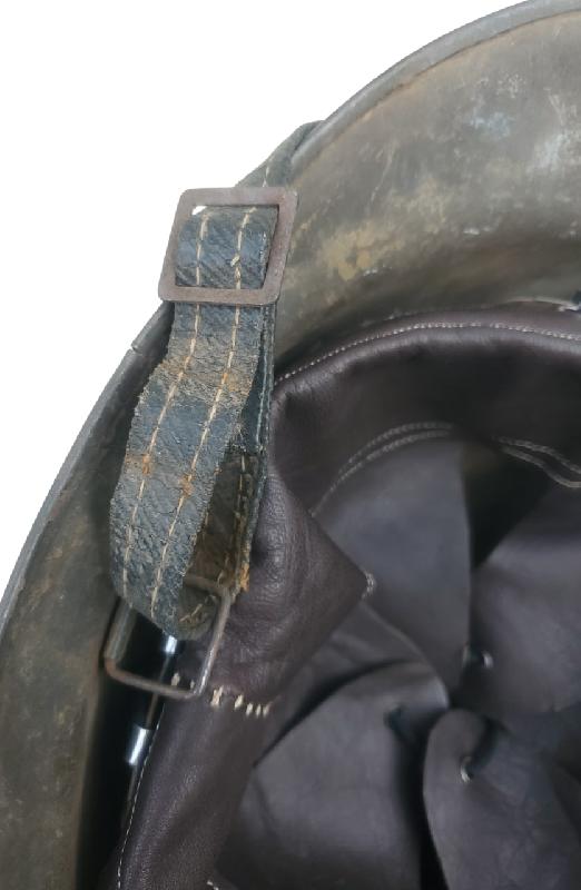 Jugulaire en similicuir typique des fabrication de la défense passive.