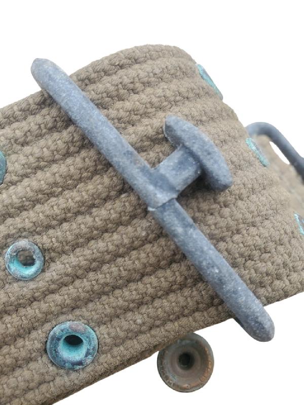 Ensemble dans une patine cohérente. Ceinturon en bon état général. Un accro sur la toile. Boucle mâle présentant une fissure mais ne gène en rien son utilisation.