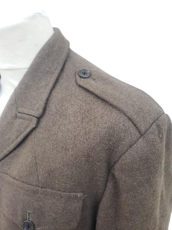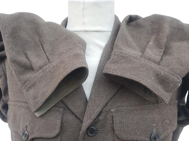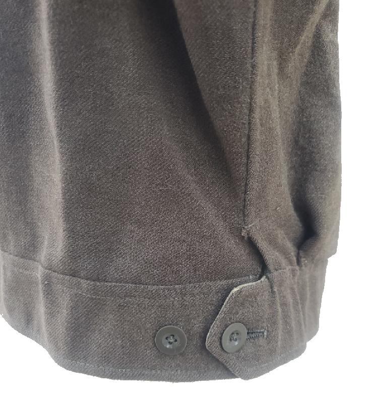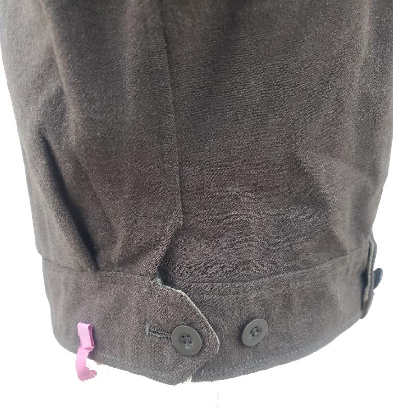 Tous les boutons sont présents, sauf un à une manche. Traces d'anciens grades ou losanges d'unités sur les manches.