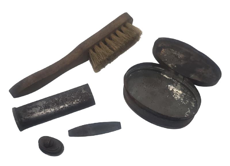 Une boite à graisse double modèle 1874. Graisse pour arme d'un coté et chaussures de l'autre. En bon état malgré des bosses sur la tôle.