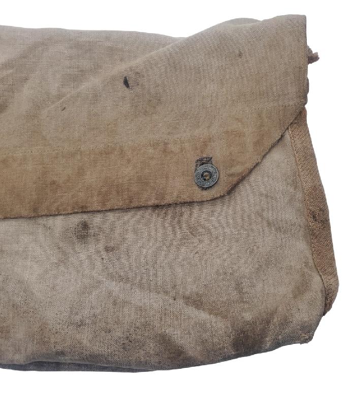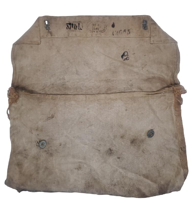Courroie de transport sectionnée. Les deux boutons sont présents. Un "équipements militaires" l'autre de fabrication anglaise.