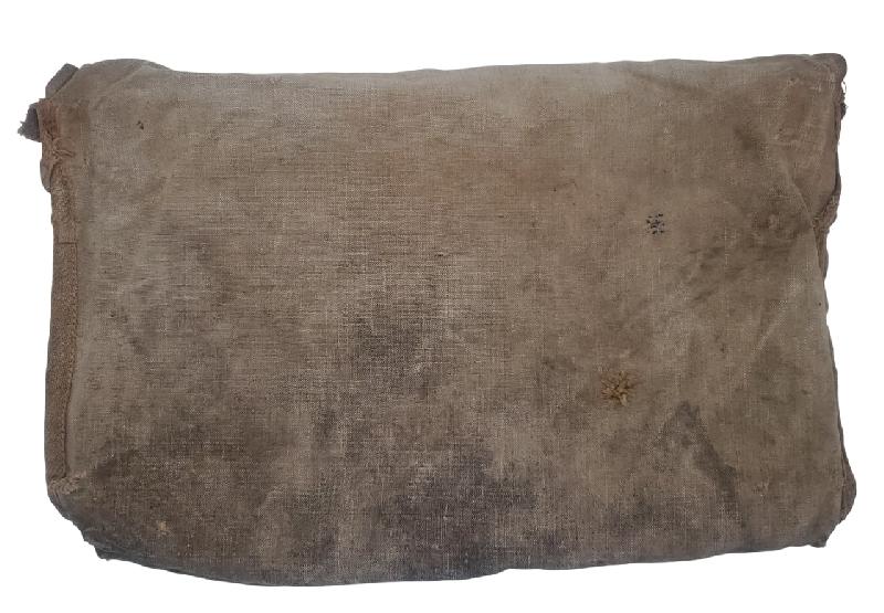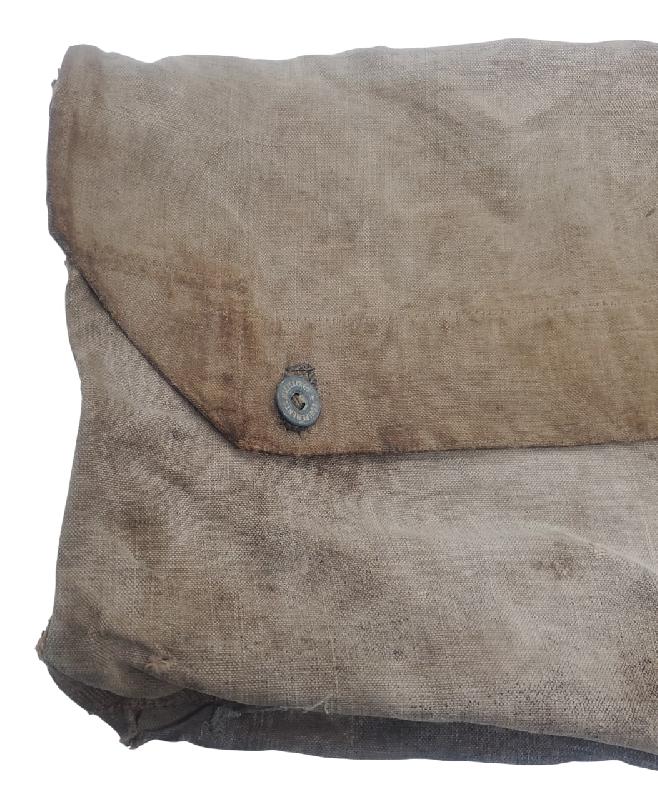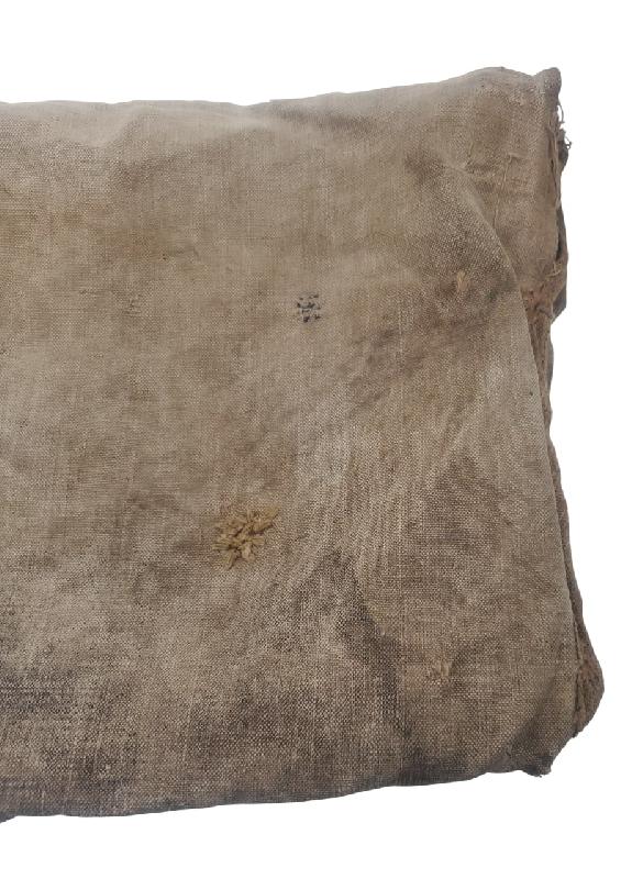 En état brut de trouvaille. Toile saine malgré quelques taches et des accros. Teinte beige.