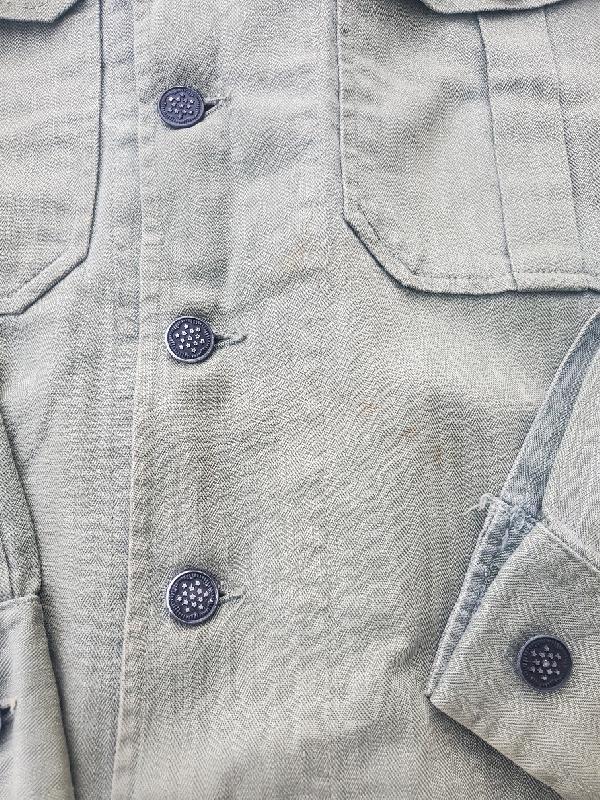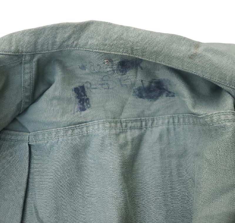 En superbe état général malgré quelques traces de rouilles par-ci par-là due à un mauvais stockage. Belle teinte OD clair. Non délavée. Tous les obutons sont présents et présentes encore leur peinture de revêtement.