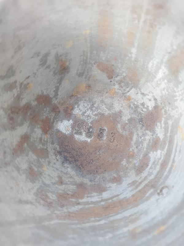 Présente de deux matricules. Un sur le côté et l'autre dans le fond du quart