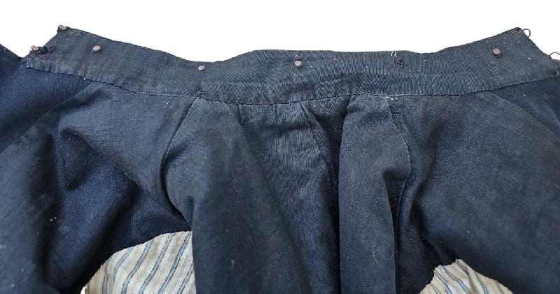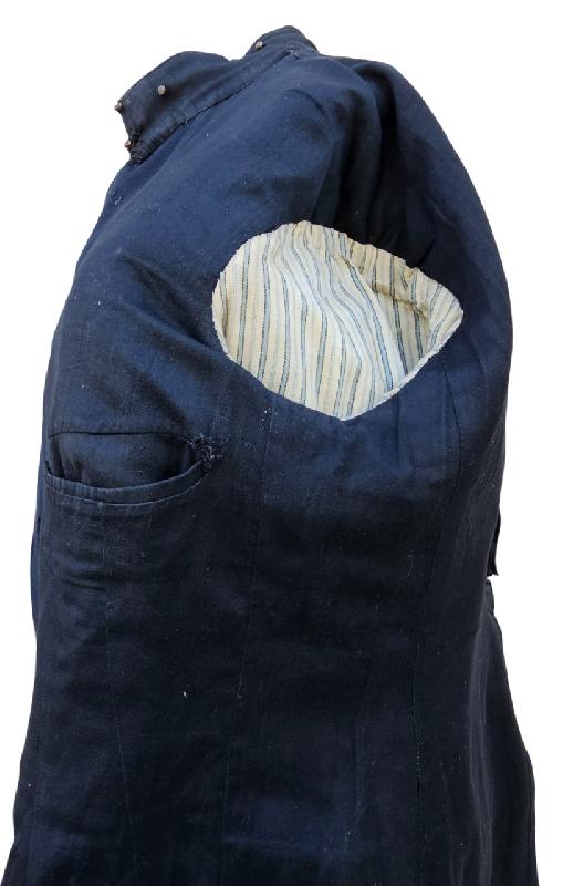 Doublure noire en belle état. Intérieur des manches en drap rayures.