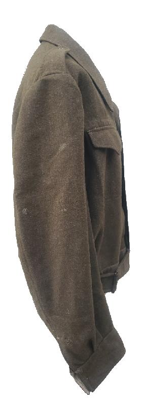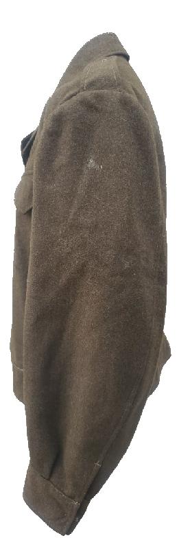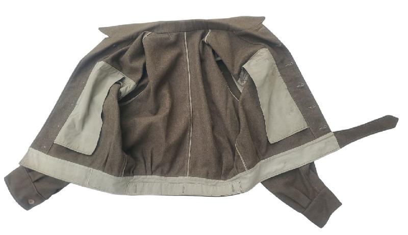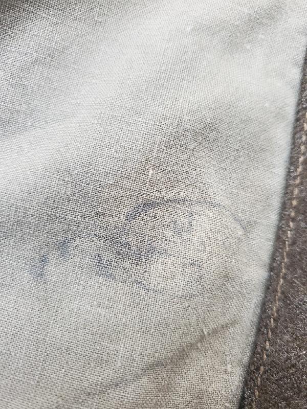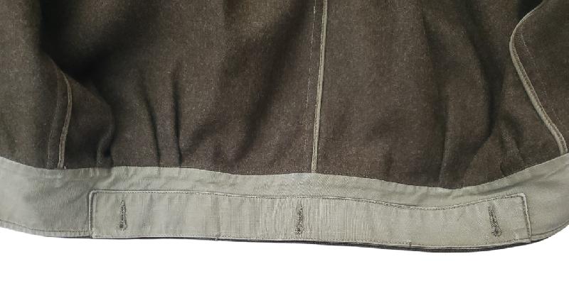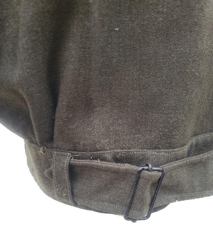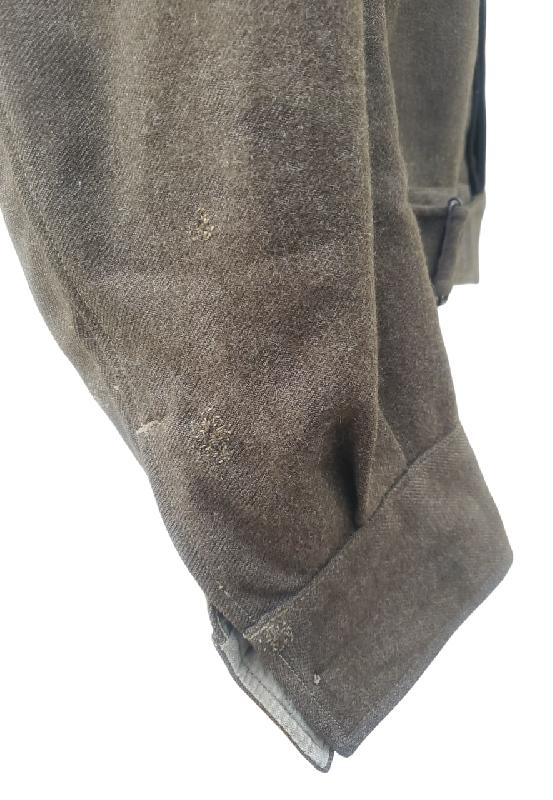 Quelques reprises de la laine. Manque les deux boutons aux pattes d'épaules et les deux poches de poitrine. Belle teinte.