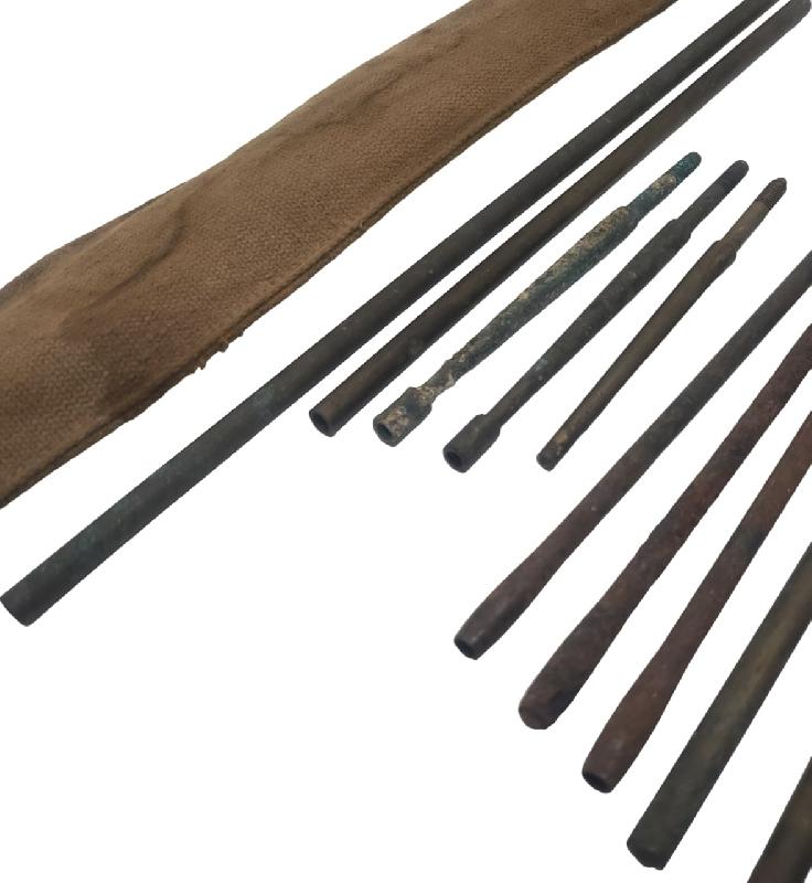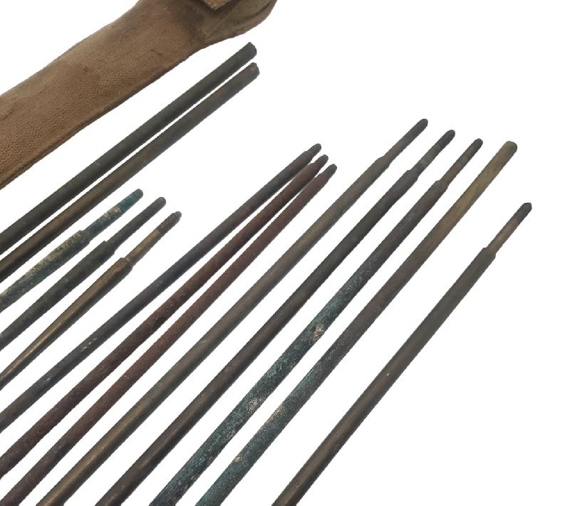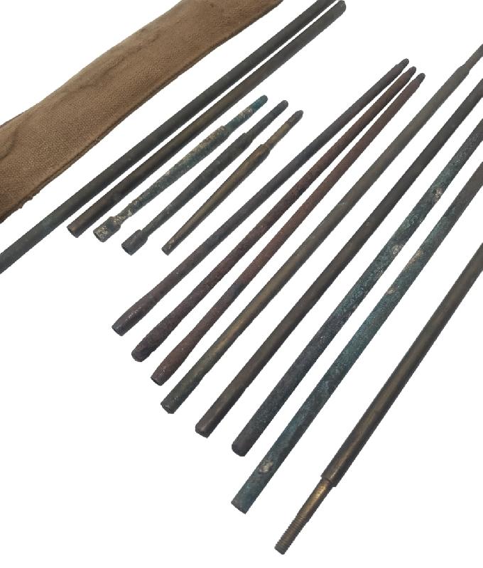 Plusieurs baguettes et écouvillons sont présents. N'est pas présente la baguette de départ avec la boule/poignée.