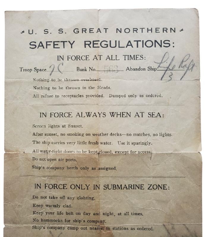 Document en bon état général. Déchiré au niveau de certaines pliures. Document donné aux soldats américains en partance pour la France ou au retour vers les USA.