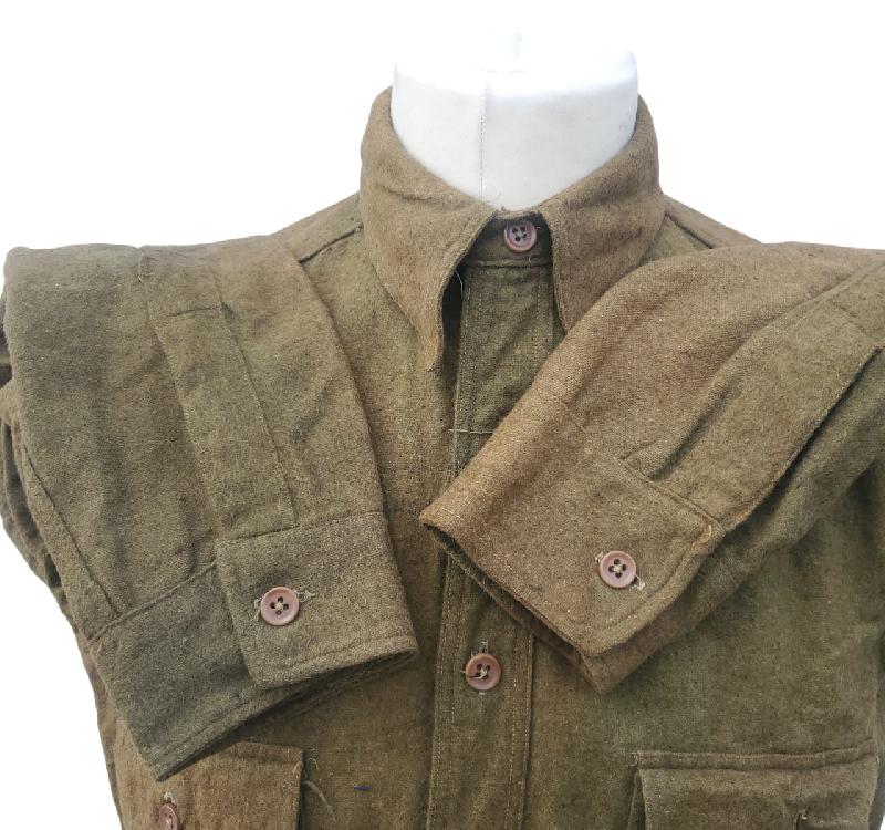 Poches de poitrine présentes. Patte de fermeture de col présente. Belle teinte avec quelques variations de couleurs due à la laine utilisée.