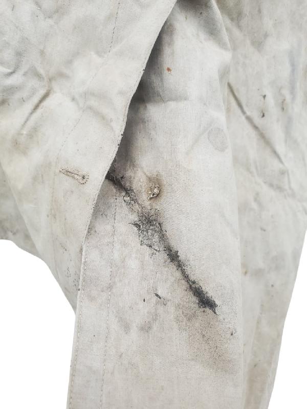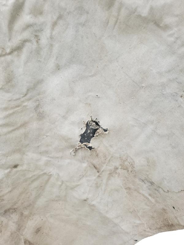 Caoutchouc très souple. Présente plusieurs trous. Renfort de caoutchouc décollé par endroits.