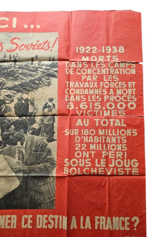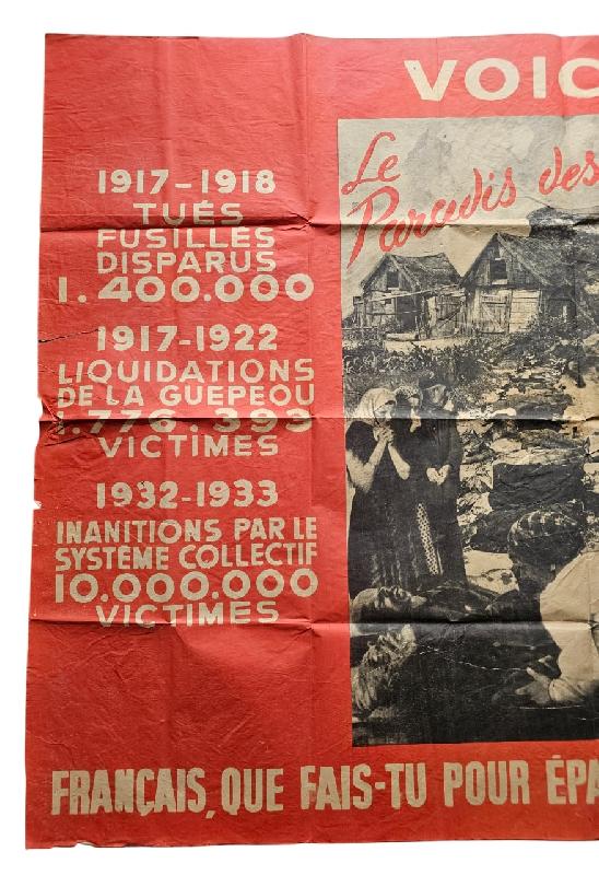 Rare affiche WW2 française traitant du communisme. Fabriquée à partir de 1942 par le gouvernement de Vichy.