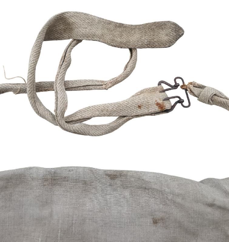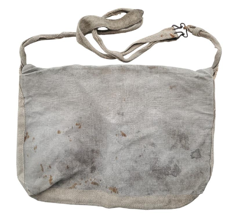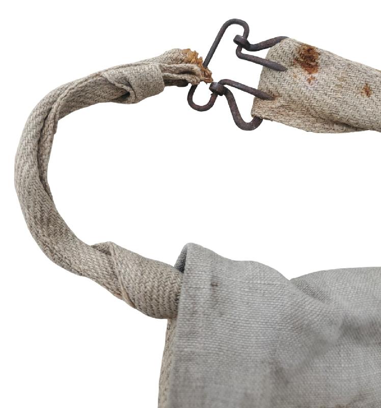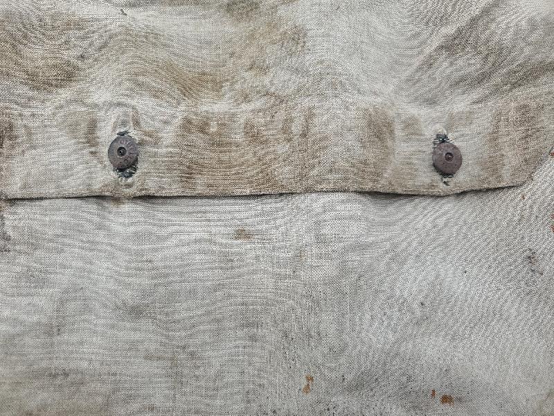 Boutons remplacés d'époque. Courroie de transport présente. Faiblesse au niveau de l'agrafes. A restaurer (ou non).