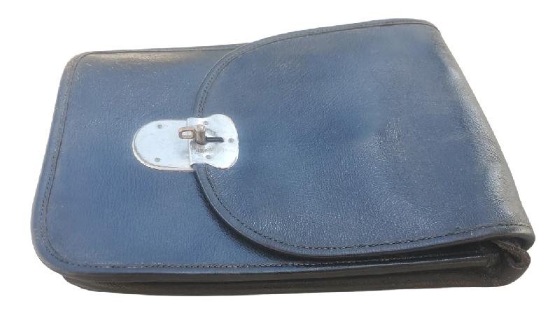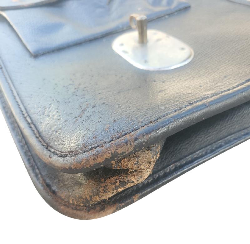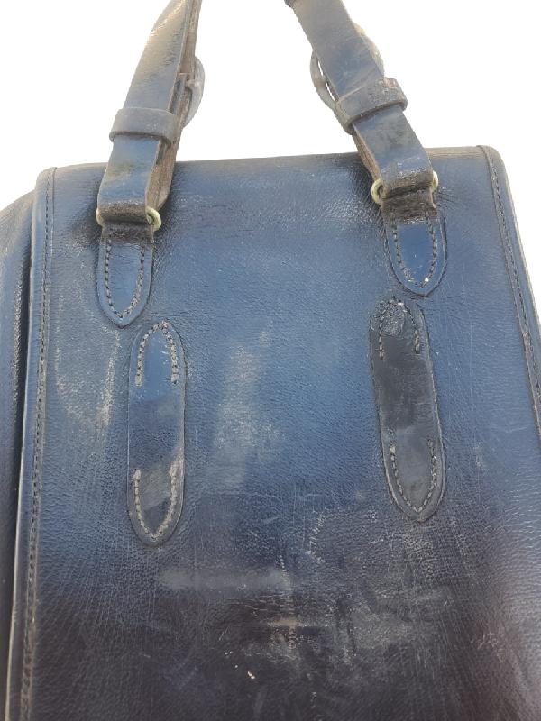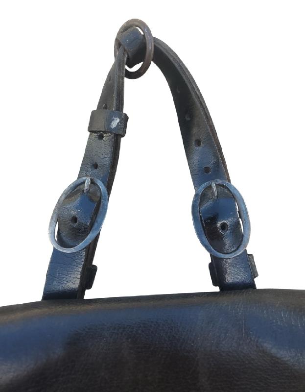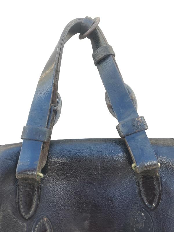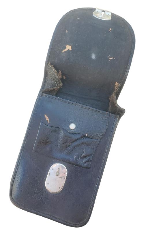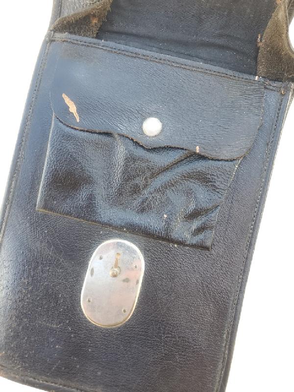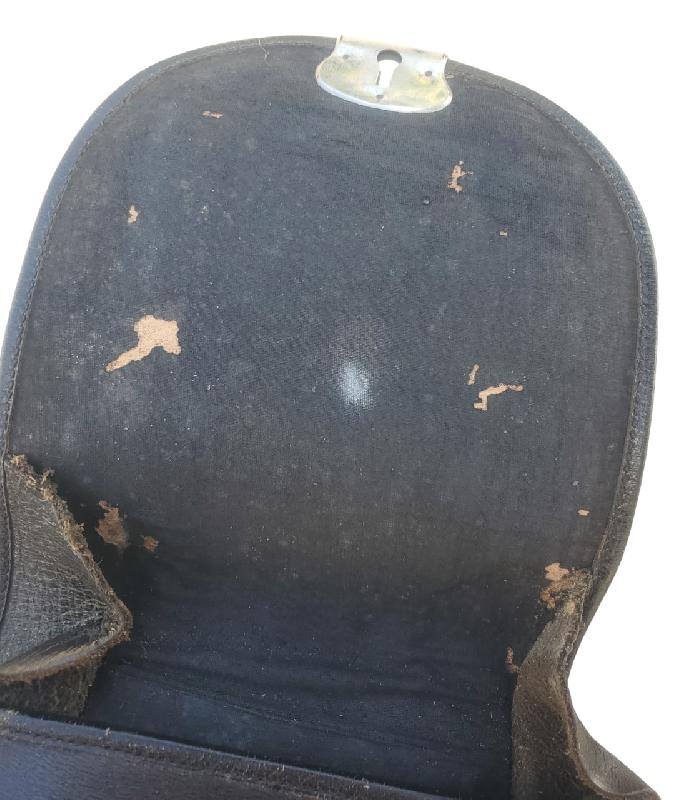 En bon état général. Cuir sain et souple. En cuir noir glacé des fabrication avant 1914.