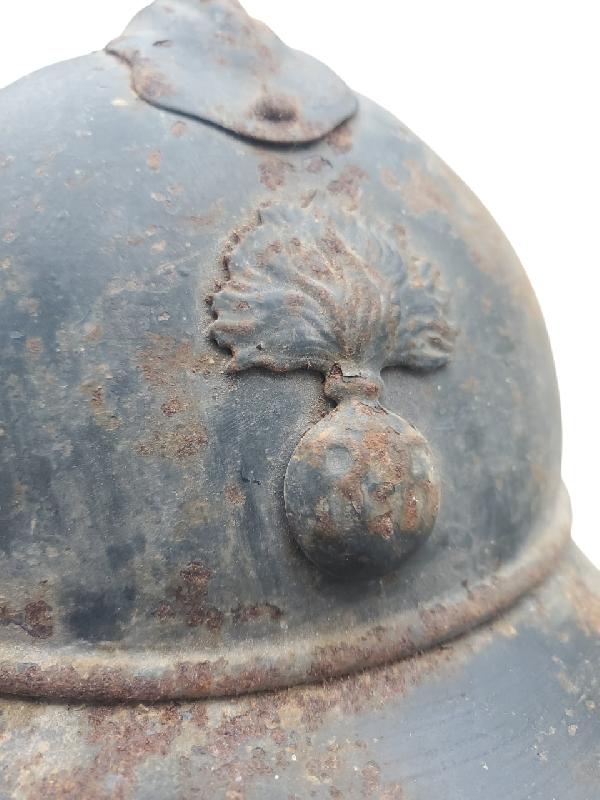 Complet. Coque en bel état. Avec ses salissures. Plus de 100 ans sans avoir été touché. Peinture présente à 87%. Insigne toute arme présent et monté d'origine.