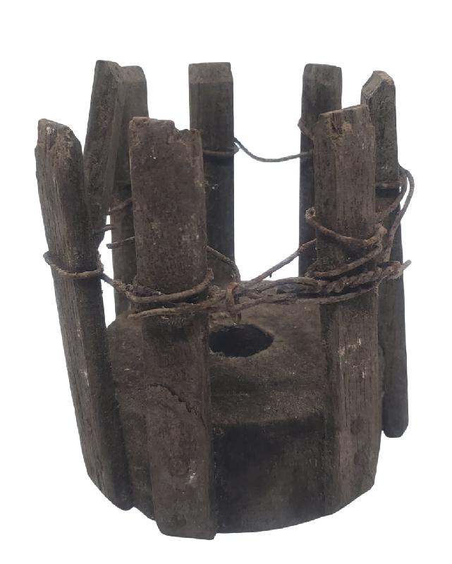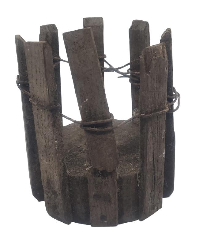 En état jus, brut de trouvaille. Couvercle/capuchon pour container osier obus.