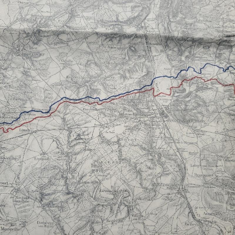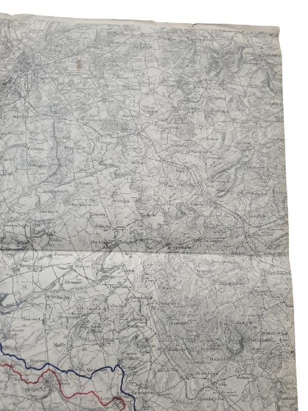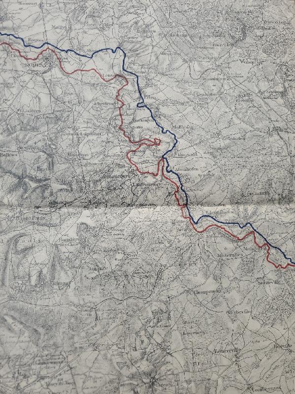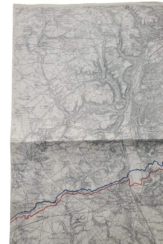 En très bon état général. Quelques traces d'utilisation. Coins écornés. Positions des tranchées bien marquées. En date du 15 mai 1917