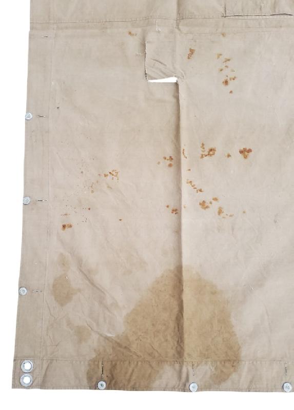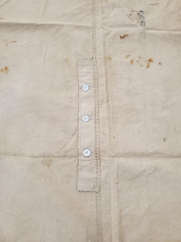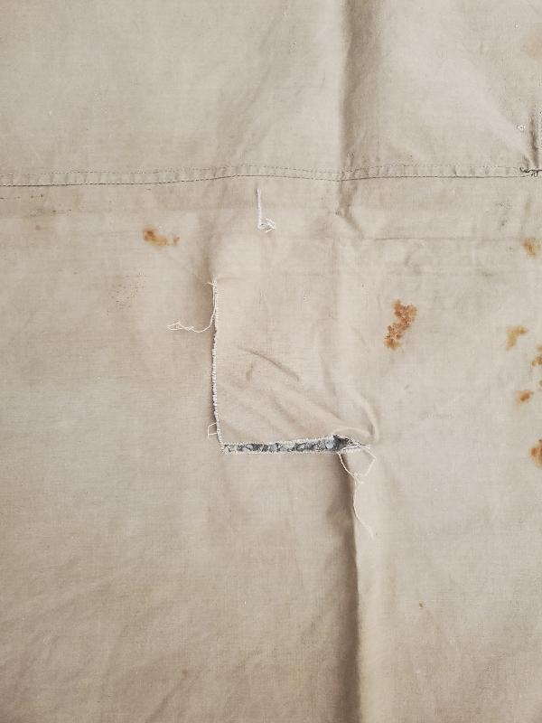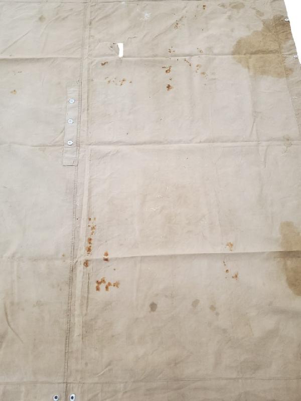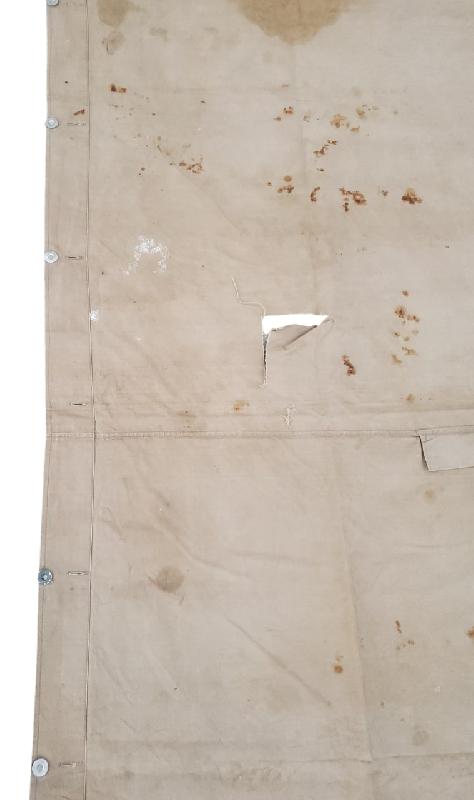En état brut de trouvaille. Présence de taches à plusieurs endroits ainsi que des accros ( visibles en photographies).