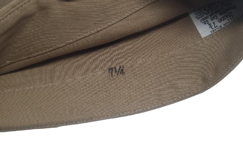 Belle teinte kaki beige. Tampon de taille 7 1/4 présent. Tour de tête 58 cm.