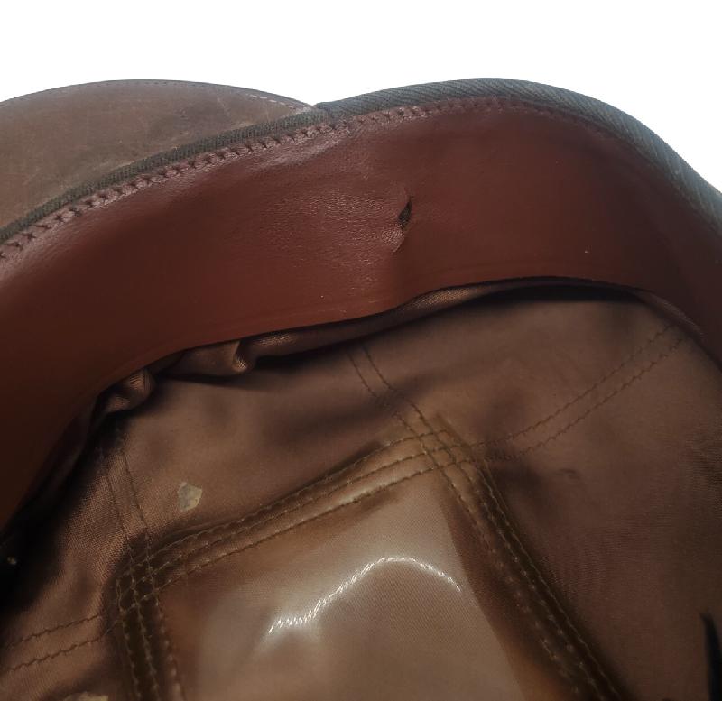 Petit défaut par accro dans le bandeau de sudation provoqué par le frottement avec le bouton de jugulaire.