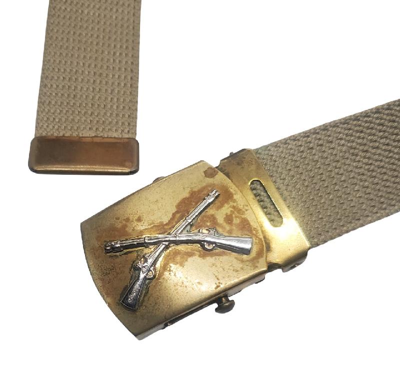En très bon état général. Bonne boucle officier WW2 avec disque col infanterie soudée dessus.