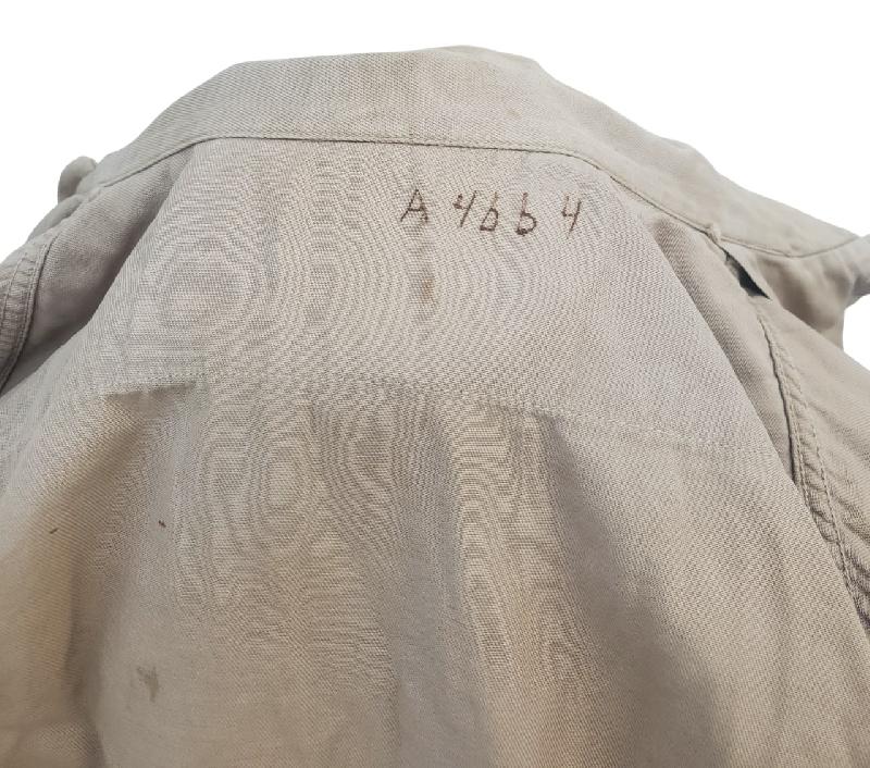 Manque deux boutons. Présence laundry number dans le col. Auucne recherche faite.