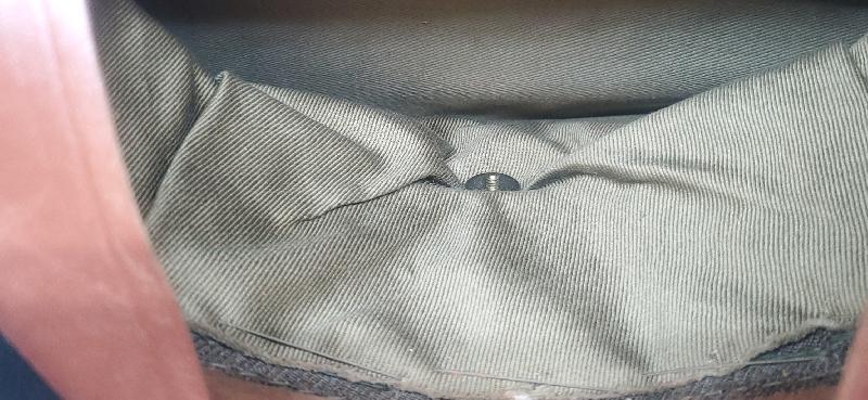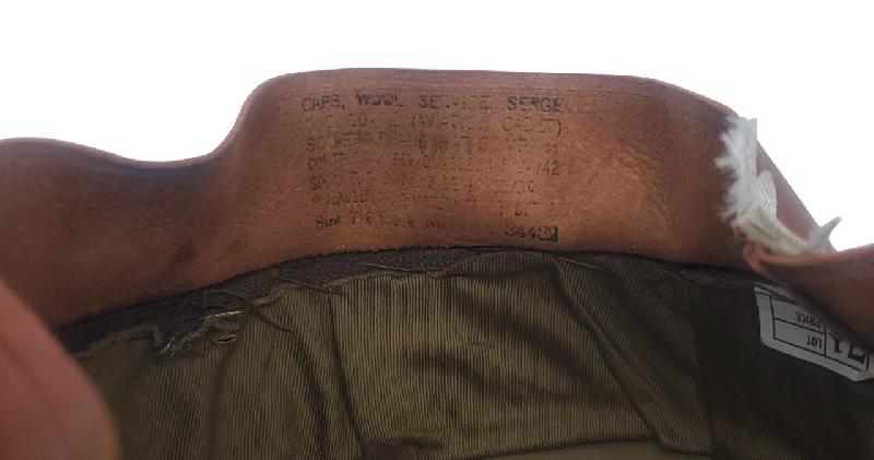 Bandeau de sudation en très bon état. Doublure en toile de coton. Beaux marquages. Casquette initialement destiné aux cadets. Datée 1942. Taille 7 1/8 correspondant à un bon 57 voir petit 58 de tour de tête