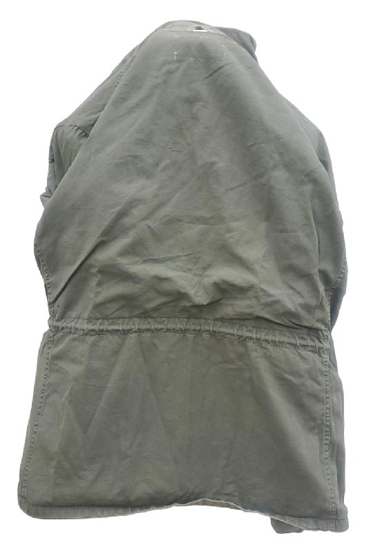 En bon état général malgré qu'elle ai été portée. Garde une belle teinte OD. Bas des manches propre malgré un début d'usure. Aucun accro sur la veste. Aucune tache notoire.