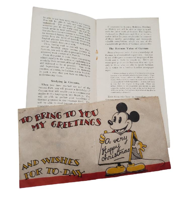 Et une carte de joyeux noël de Disney avec un mickey. En état d'usage. Couleurs vives.