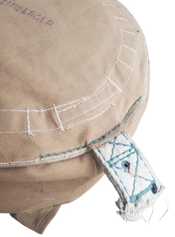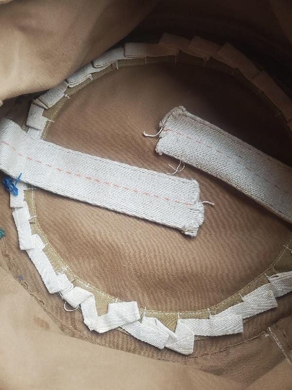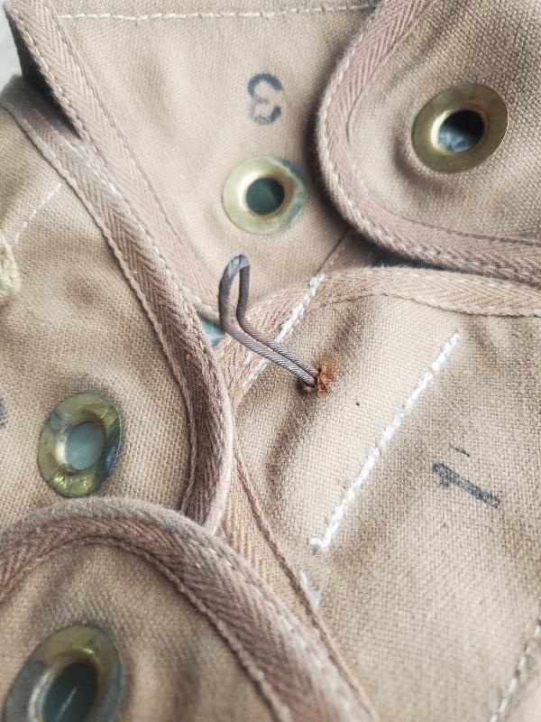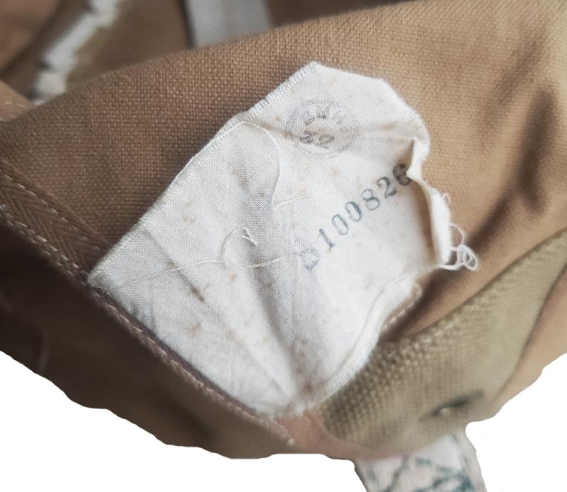 Rabats bien numérotés de 1 à 6. Mousquetons non présents, ont été sectionnés. Etiquette toile présente. Un nom inscrit en dessous du sac.