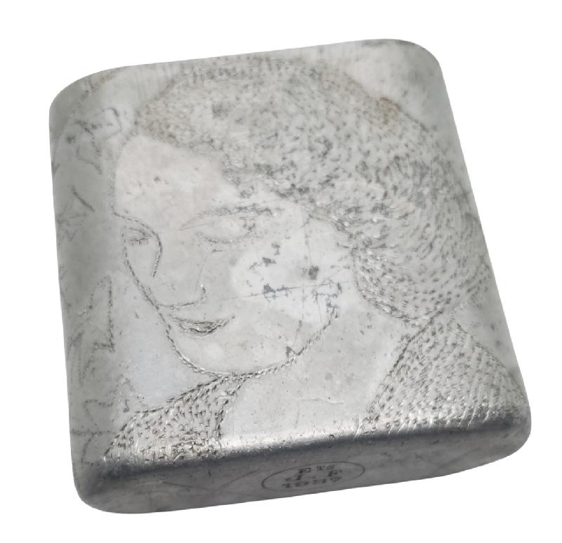 Belle gravure sur le devant d'un portrait d'une femme .