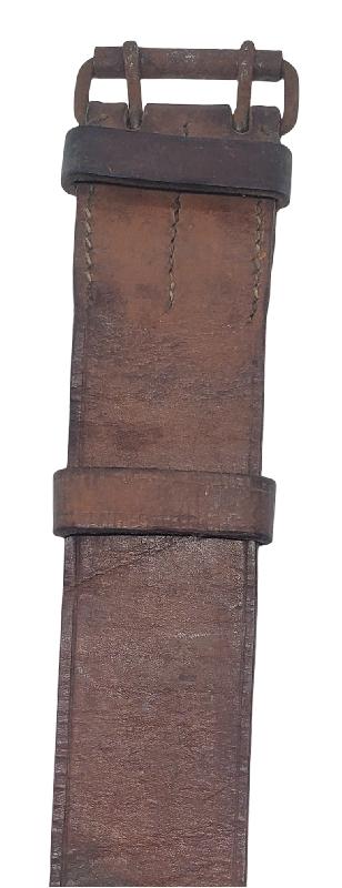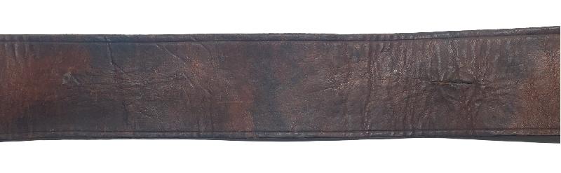 En bel état. Cuir souple et dans sa teinte brune malgré un graissage. Passants amovible et fixe présents.