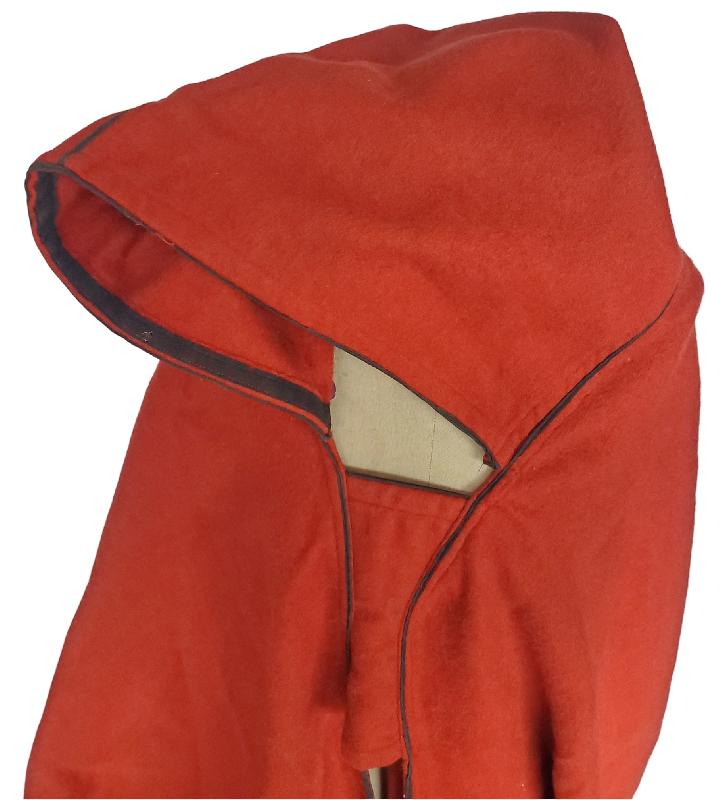 Dans sa longueur totale. Capuche présente, non sectionnée.