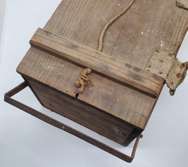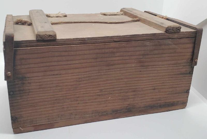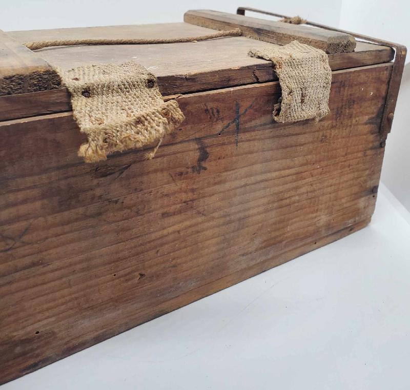 Caisse en bois pour relais et cartouches propulsives de mortier de 81 mm français WW2.